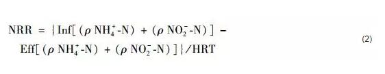 容積基質(zhì)氮去除率[volume substrate nitrogen removal rate,NRR,kg˙(m3˙d)-1]采用式(2)進(jìn)行計算: