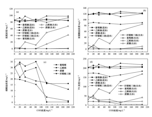 本研究采用ASBR反應(yīng)器,選取葡萄糖、蔗糖、乙酸鈉、檸檬酸三鈉這4種常見有機(jī)物,從NH4+-N、NO2--N、硝酸鹽氮(NO3--N)和總氮(TN)等的去除探討了不同濃度和種類的有機(jī)碳源短期變化對厭氧氨氧化菌的活性的影響和系統(tǒng)脫氮情況,以期為厭氧氨氧化工藝的實際應(yīng)用提供理論和技術(shù)支持.