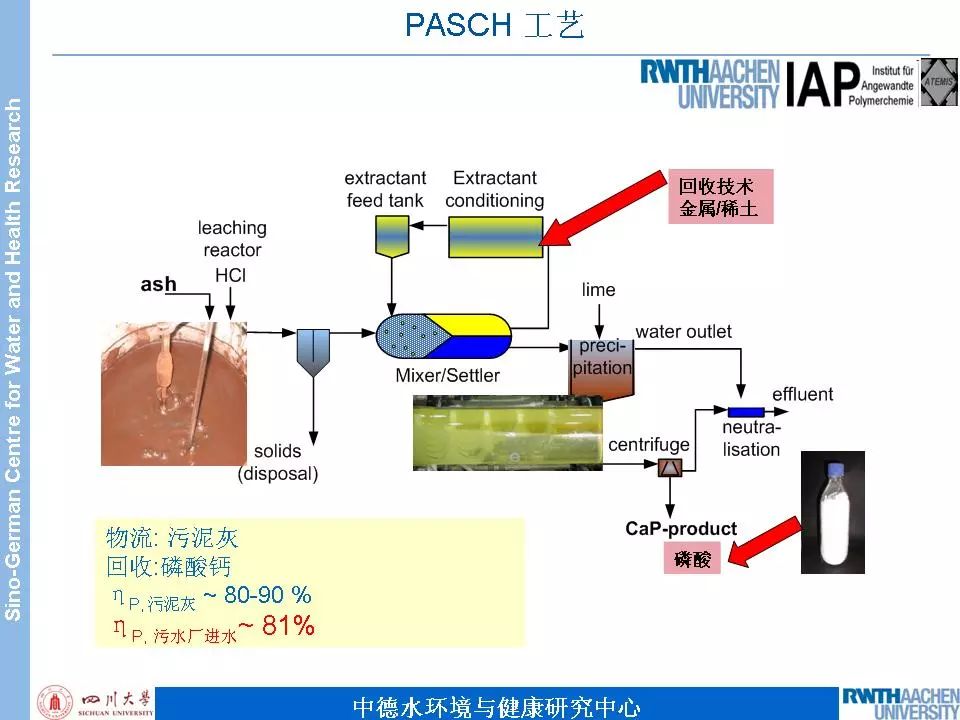 PASCH工藝的特點(diǎn):PASCH工藝是從污泥焚燒的灰分中回收磷。該工藝磷回收率要大于90%;ISA研究所以及FraunhoferIME研究所的研究結(jié)果表明,污泥焚燒過(guò)程中有機(jī)污染物已經(jīng)破壞,回收產(chǎn)品的無(wú)機(jī)雜質(zhì)含量低,該產(chǎn)品具有良好的植物可利用性;IFEU研究所的研究結(jié)果,與其他回收工藝相比(例如協(xié)同焚燒、污泥直接農(nóng)業(yè)利用等),PASCH工藝的生態(tài)評(píng)估具有明顯優(yōu)勢(shì)。示范項(xiàng)目運(yùn)行結(jié)果表明,PASCH工藝具有較低的成本。