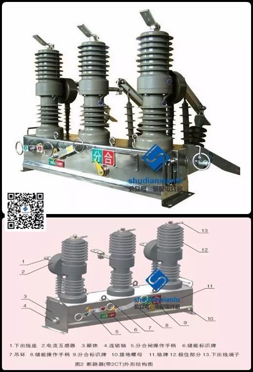 ▲ 柱上真空斷路器(真空滅弧,SF6絕緣)