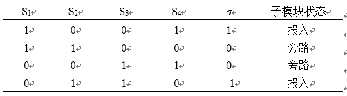 式中σσ為開關(guān)函數(shù),由各個子模塊功率器件的導(dǎo)通情況確定,如表1所示。