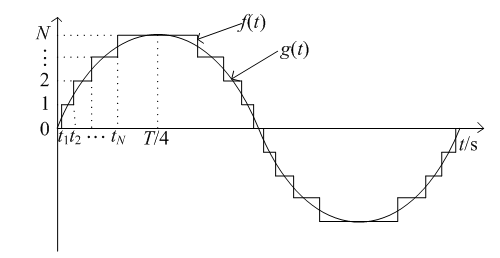 設(shè)調(diào)制波g(t)=Nsin(ωt)g(t)=Nsin(ωt),則階梯波f(t)f(t)為