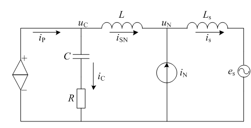 側(cè)分流電感;LdcLdc為PWM單元直流側(cè)電感;LSLS為連接電感;L、C、R分別為PWM單元濾波電感和電容以及無源阻尼電阻。