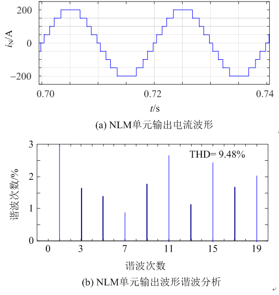 圖11 NLM+PWM單元疊加后輸出電流波形及諧波分析