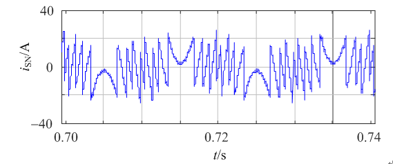 對稱性,取1/4周期分析,其余3/4周期類似??梢钥闯霎?dāng)NLM單元投入0個子模塊時,4個子模塊都旁路,各子模塊維持原電流值;投入1個子模塊時,投入的那1個子模塊電感電流減少,其余