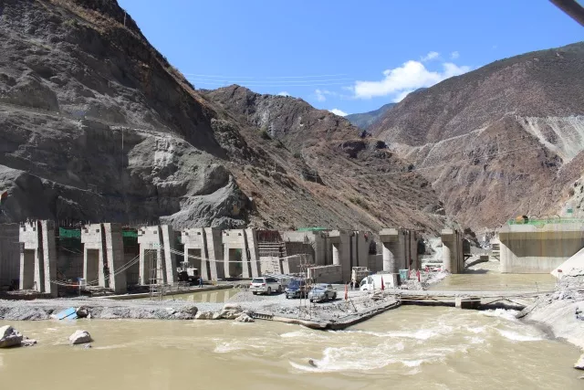 2015年1月4日,第一個枯水期施工開始,當(dāng)年左岸導(dǎo)流明渠完成通水過流,右岸基坑開挖完成。2015年5月11日,第一倉混凝土開始澆筑。2018年5月11日,首部樞紐工程最后一倉混凝土澆筑完成。此間恰好歷時整整三年,在這三年里,三分局新藏水電站項目克服了交通不便、物資匱乏斷供、洪水、停電等重重困難。