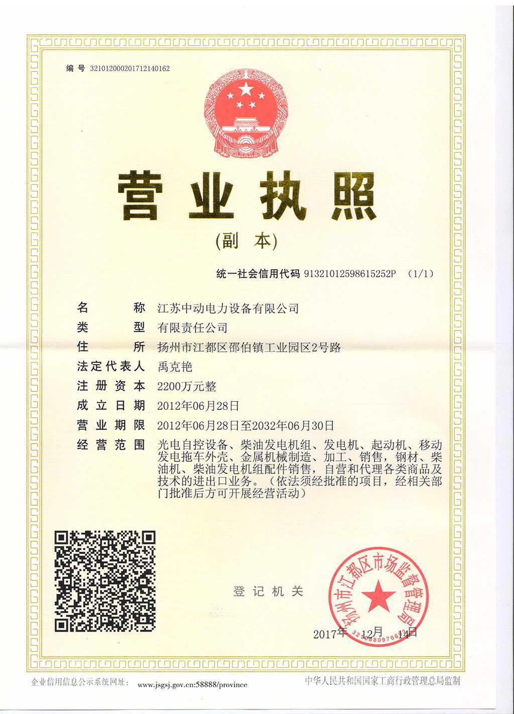 江蘇中動電力設(shè)備有限公司營業(yè)執(zhí)照